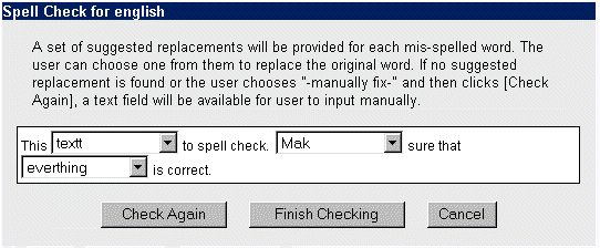 你可能会得到和下列相似的拼写检查结果: